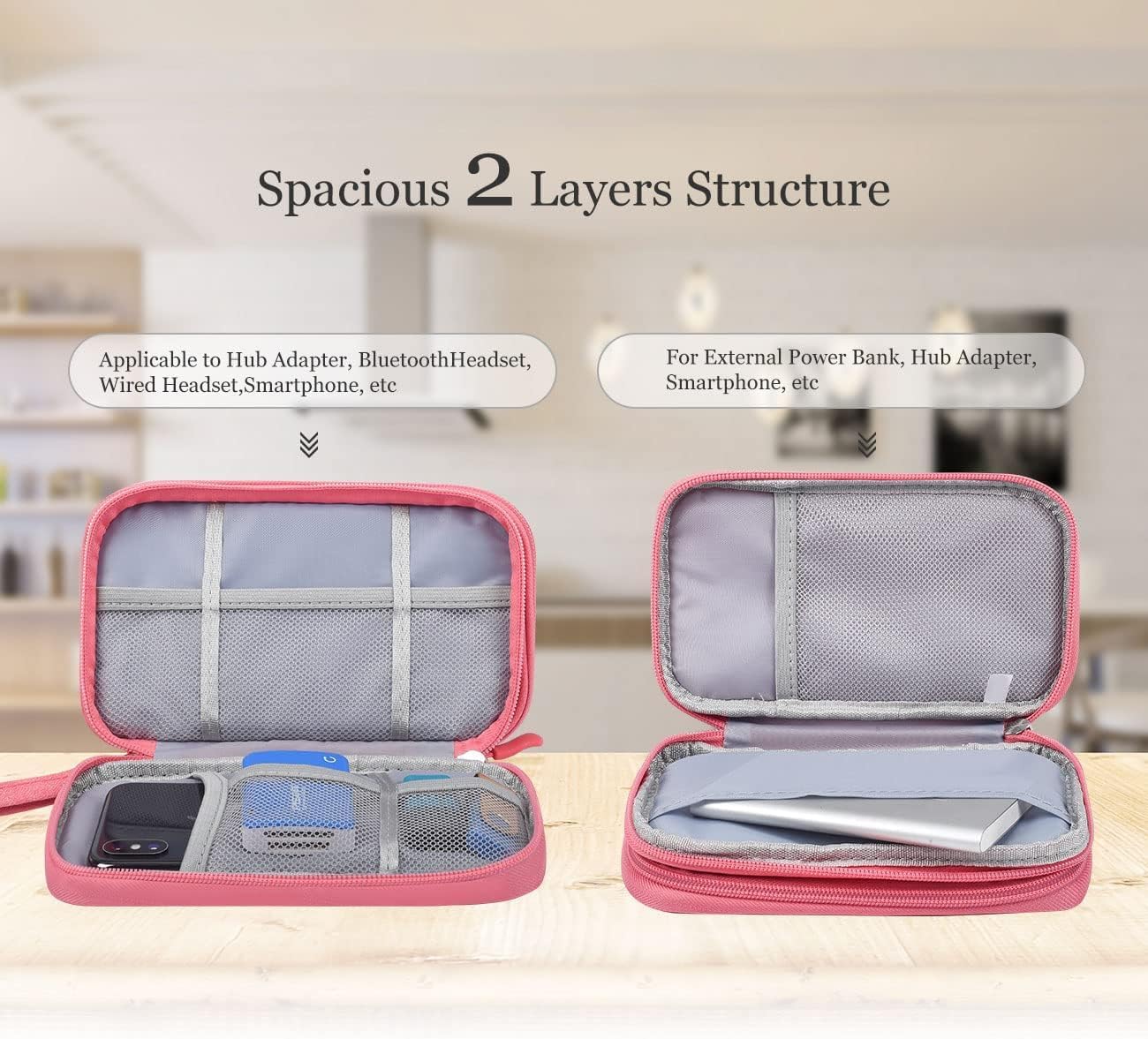 2 Compartments Design: The case bag comes with 2 compartments, designed to store electronic gadgets, such as power bank, batteries, hard drive, cables, external driver, flashdrive, chargers, several USB cables, memory cards, smartphones and other accessories.