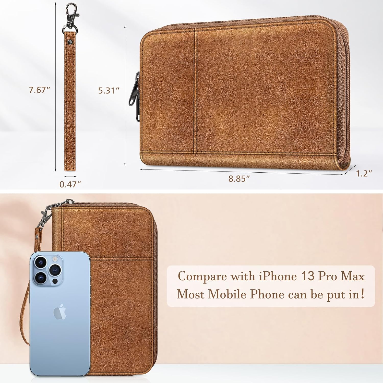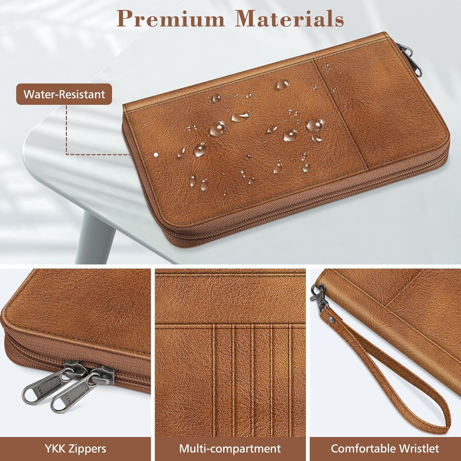 【HIGH-QUALITY MATERIAL】made from premium vegan leather with strong zippers and an anti-tearing wristlet – durable, sleek, functional & unisex design