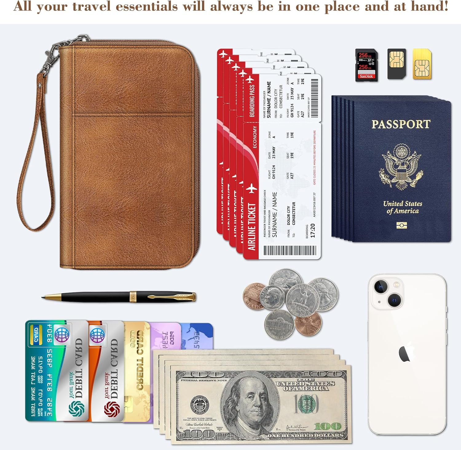 【ROOMY BUT LIGHTWEIGHT】It is large enough to store carry-on essentials and all travel documents in one place when traveling. Added security and convenience for your family trip