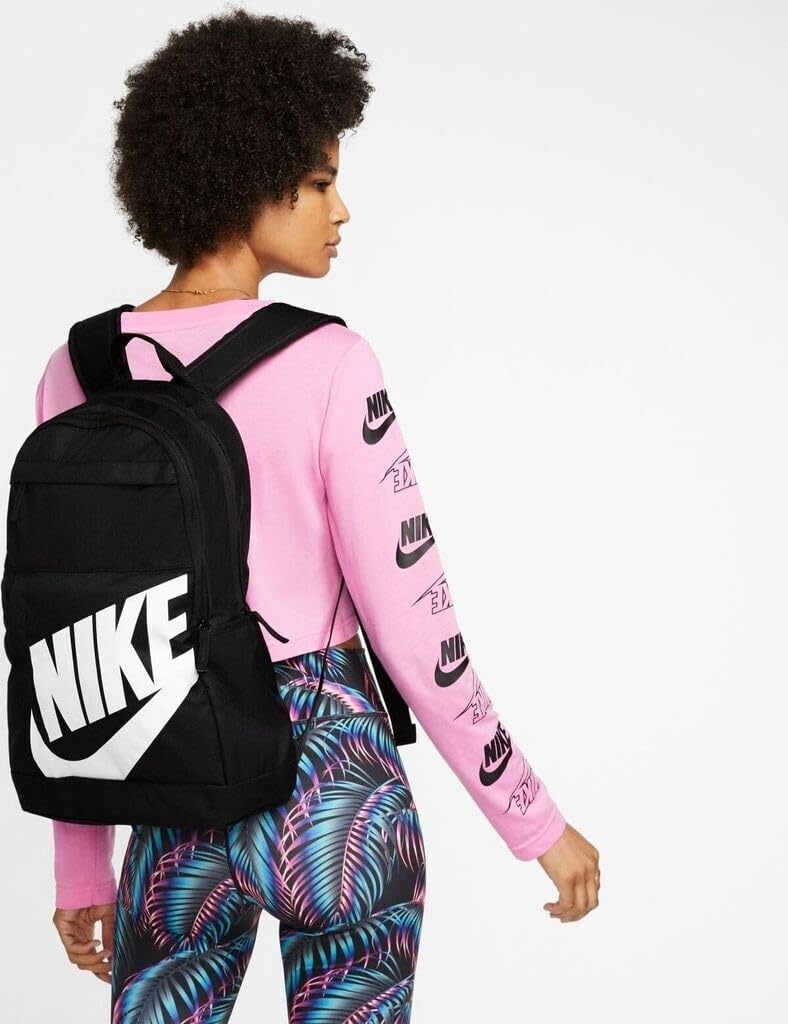 The Nike Elemental backpack is a practical bag to take with you. This bag has a main compartment with double zipper and at the front there are two smaller zipped compartments for accessories. The adjustable shoulder straps are provided with a soft padding. Ideal for school. Large Nike corporate logo is printed at the front pocket.